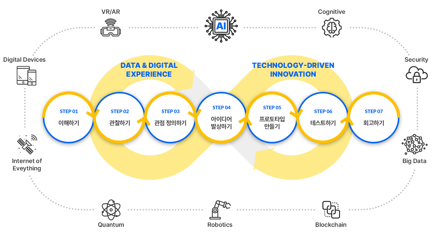 전 세계와 한국에서 가장 보편화된 디자인 씽킹의 프로세스 방법론으로 자리잡게 되었습니다.